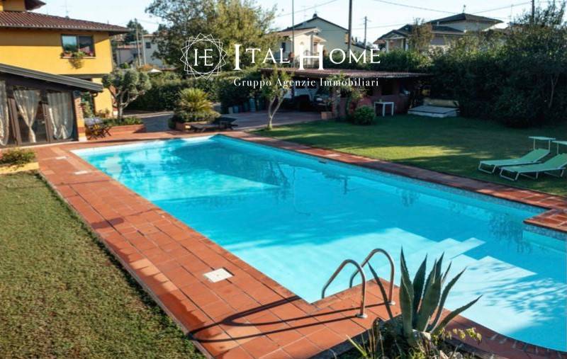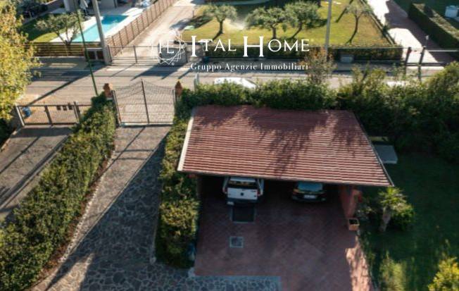 Peschiera Del Garda, a 5 minuti dalla spiaggia, proponiamo casa indipendente su di un lotto di 1450 mq. A farne da cornice una splendida piscina ed un ampio giardino piantumato. L'abitazione di 340 mq comprende un corpo principale di 160 mq, un salone con biliardo di 110 mq e una dependance di 70 mq. Completano la proprietà un terrazzo al primo piano di 40 mq, un portico con camino al piano terra anch'esso di 40 mq e due posti auto coperti più un ampio piazzale con autobloccante per parcheggiare comodamente 3/4 autovetture. Chiama subito per maggiori informazioni e/o fissare un appuntamento allo 0458240082.