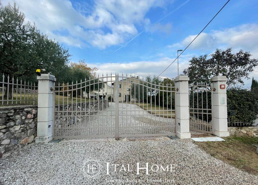 Pastrengo, immersa nel verde delle colline della Valpolicella, proponiamo prestigiosa villa con parco a soli 10 minuti di auto dal lago di Garda e dal centro di Verona. Il corpo abitativo, circondato da rigogliose piante, possiede due rustici annessi, ottimi per una soluzione ricettiva o di ampliamento. Entrando dal cancello automatizzato possiamo ammirare la vastità del giardino che circonda la villa, adornato da ulivi e siepi sempreverdi; percorrendo il vialone in ghiaia abbiamo sulla sinistra il primo garage doppio di 60 mq e sulla destra il secondo garage singolo, ad oggi adibito a magazzino, all'interno del quale vi è il locale caldaia. Tra i due garage si trova l'ingresso del primo rustico, già abitabile, di 120mq; entrando dal piano terra abbiamo un disimpegno, un bagno finestrato con box doccia ed una grande cucina abitabile con camino ad angolo. Salendo due scalini accediamo alla zona living, anch'essa dotata di uno splendido camino che padroneggia il soggiorno, da cui accediamo direttamente al primo piano, ovvero alla zona notte; questa si compone di due ampie camere matrimoniali con vista sull'incredibile panorama. Nel soggiorno è presente anche una seconda porta d'ingresso che affaccia comodamente sulla strada. Tramite una scala esterna è possibile accedere ad un mansardato open space di generose metrature. Adiacente al primo rustico vi è il secondo di 180 mq, da ristrutturare. Caratterizzato da tipiche travi a vista, l'immobile si sviluppa su tre piani: al piano terra vi è la porta per l'accesso dalla strada che ci conduce in un disipegno convertibile a bagno finestrato, al primo piano abbiamo una cucina abitabile ed un soggiorno, mentre al secondo piano un altro splendido mansardato open space frazionabile in due camere da letto. Entrambi i rustici sono dotati di enorme terrazza e giardino pertinenziale, perfetti per godersi la natura e la pace da cui si è circondati. Entrando invece nel corpo principale si accede alla zona living con finiture di gusto e termocamino, l'ampia cucina abitabile è dotata di ogni comfort. Salendo le scale in marmo ci troviamo direttamente nella zona notte, dove vi è una grande camera matrimoniale organizzata secondo l'arte feng shui, una seconda camera matrimoniale ed un comodo bagno con vasca. All'ultimo piano padroneggiano due stanze mansardate, da cui è possibile ricavare in una delle due il secondo bagno. Possibilità di annettere all'immobile un terreno adiacente di 1300mq coltivato a vigneto, ottimo per un ingresso separato o per creare una zona solarium con piscina. Tutte le stanze dell'intera villa godono di una vista mozzafiato, si possono infatti ammirare colline stupende, il Monte Baldo, il fiume Adige ed i caratteristici paesi di Bussolengo e Pescantina. Un'occasione unica, da non farsi sfuggire se si ama la natura e la tranquillità!!!