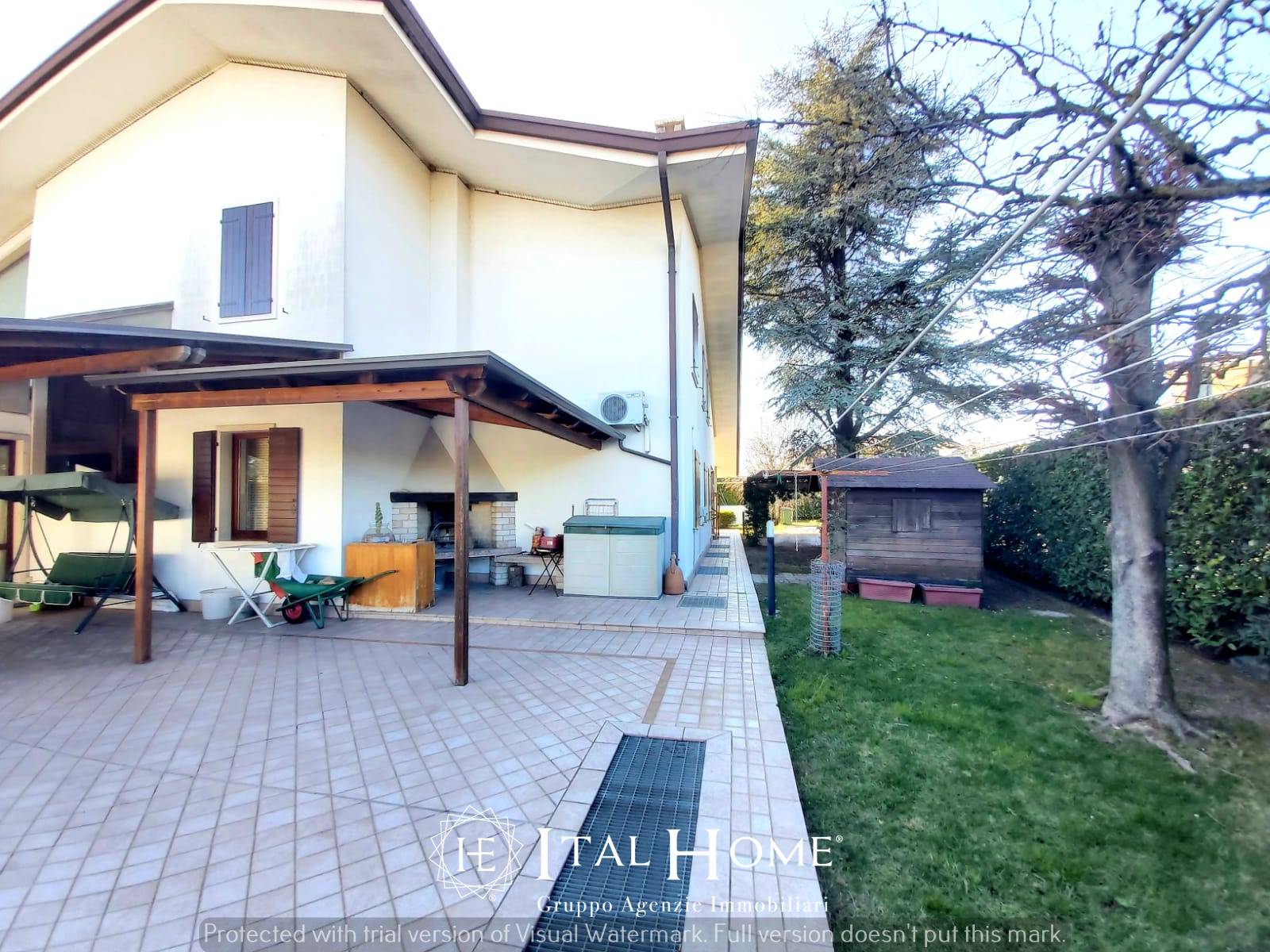 Bussolengo, centralissimo, comodo a tutti i servizi, vendiamo causa trasferimento splendida villa singola. Su di un lotto di quasi 1500 mq, l'immobile si sviluppa su 2 livelli più interrato ed è così composto: al piano terra troviamo ingresso su ampia zona living con stufa tirolese, cucina abitabile con accesso al porticato per pranzare/cenare all'aperto (dove è presente anche un comodo camino) disimpegno notte, 2 bagni finestrati ( uno con doccia ed uno con vasca idromassaggio e doccia), 3 camere ed una stanza disbrigo. Dalla zona living si accede tramite una scala interna, ad un'ampia stanza adibita a camera matrimoniale/palestra con terrazzo. Dal disimpegno notte, un'ulteriore scala interna conduce ad un primo piano indipendente, attualmente al grezzo, dove è possibile sviluppare un'ulteriore unità abitativa di 70 mq, anch'esso con terrazzo. L'interrato, collegato sia internamente che esternamente, è composto da: una taverna di 60 mq con camino, una cucina abitabile, un locale tecnico, un bagno, un magazzino di 100 mq (attualmente adibito a laboratorio specialistico) ed un garage di 65 mq con portone automatizzato. La villa è contornata da uno splendido giardino con impianto d'irrigazione automatizzato e 3 porticati ne fanno da cornice. E' presente, inoltre, un secondo accesso carraio per ulteriori posti auto. La villa è completa di clima in ogni ambiente, impianto di riscaldamento a radiatori con caldaia a metano, vetri termici, videocitofono, impianto d'allarme volumetrico perimetrale, 3 camini, stufa tirolese e possibilità d'arredo. PRONTA DA VIVERE!!