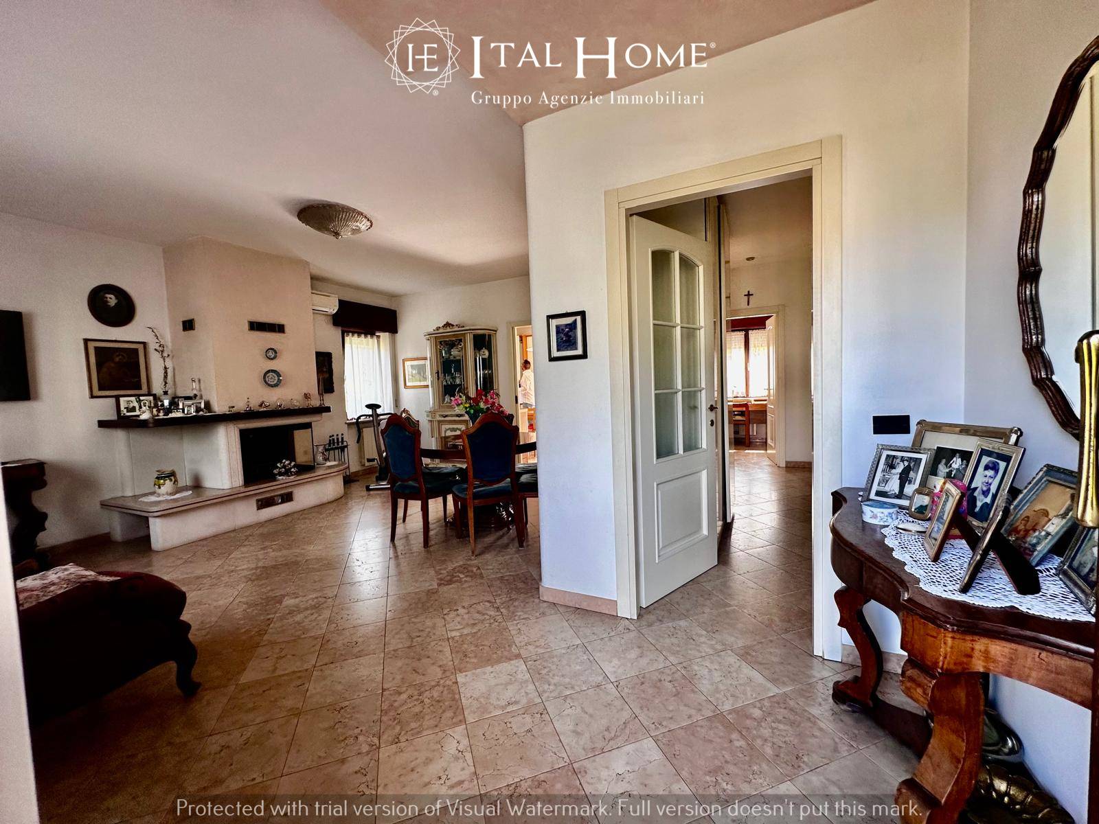 Al piano terra, con accesso diretto dal giardino privato, enorme taverna di circa 55 mq completa di cucina, bagno, riscaldamento e camino funzionante.
