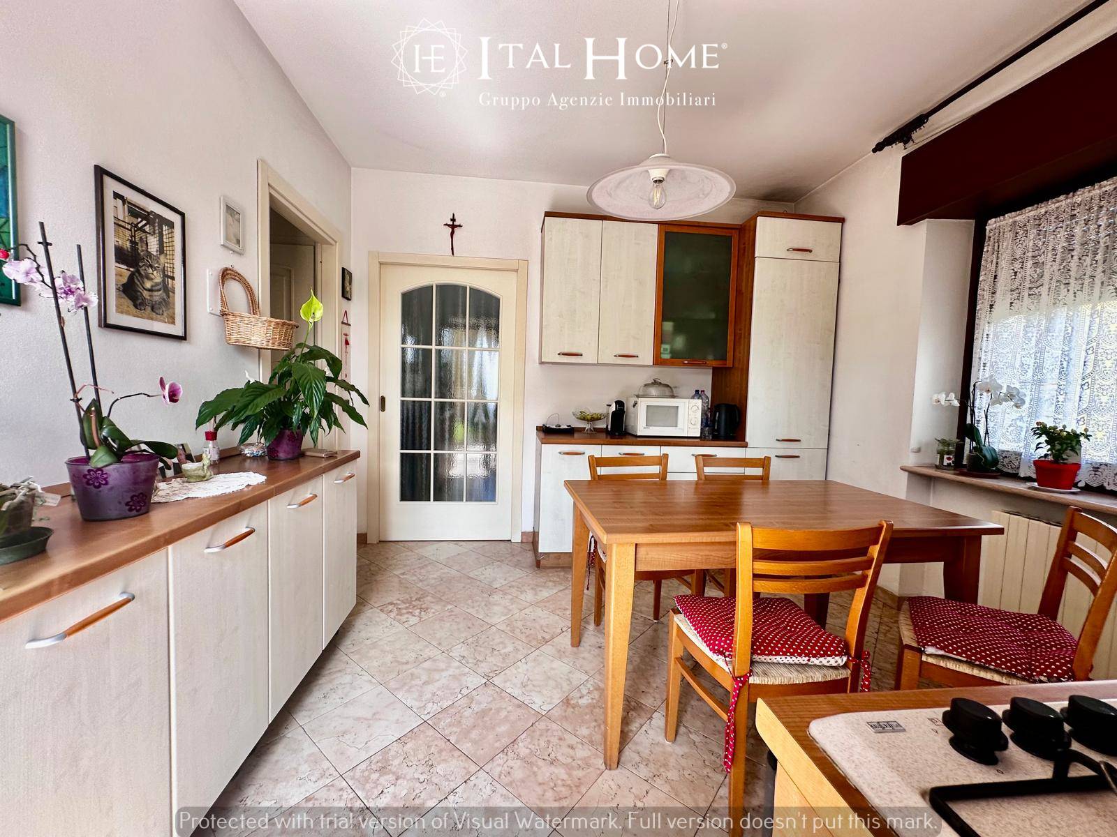 La soluzione si compone di ingresso indipendente dal giardino privato, ampia zona living dotata di termocamino, luminosa cucina separata con accesso al terrazzo abitabile, 3 camere da letto, 2 bagni e ripostiglio attualmente adibito a lavanderia.