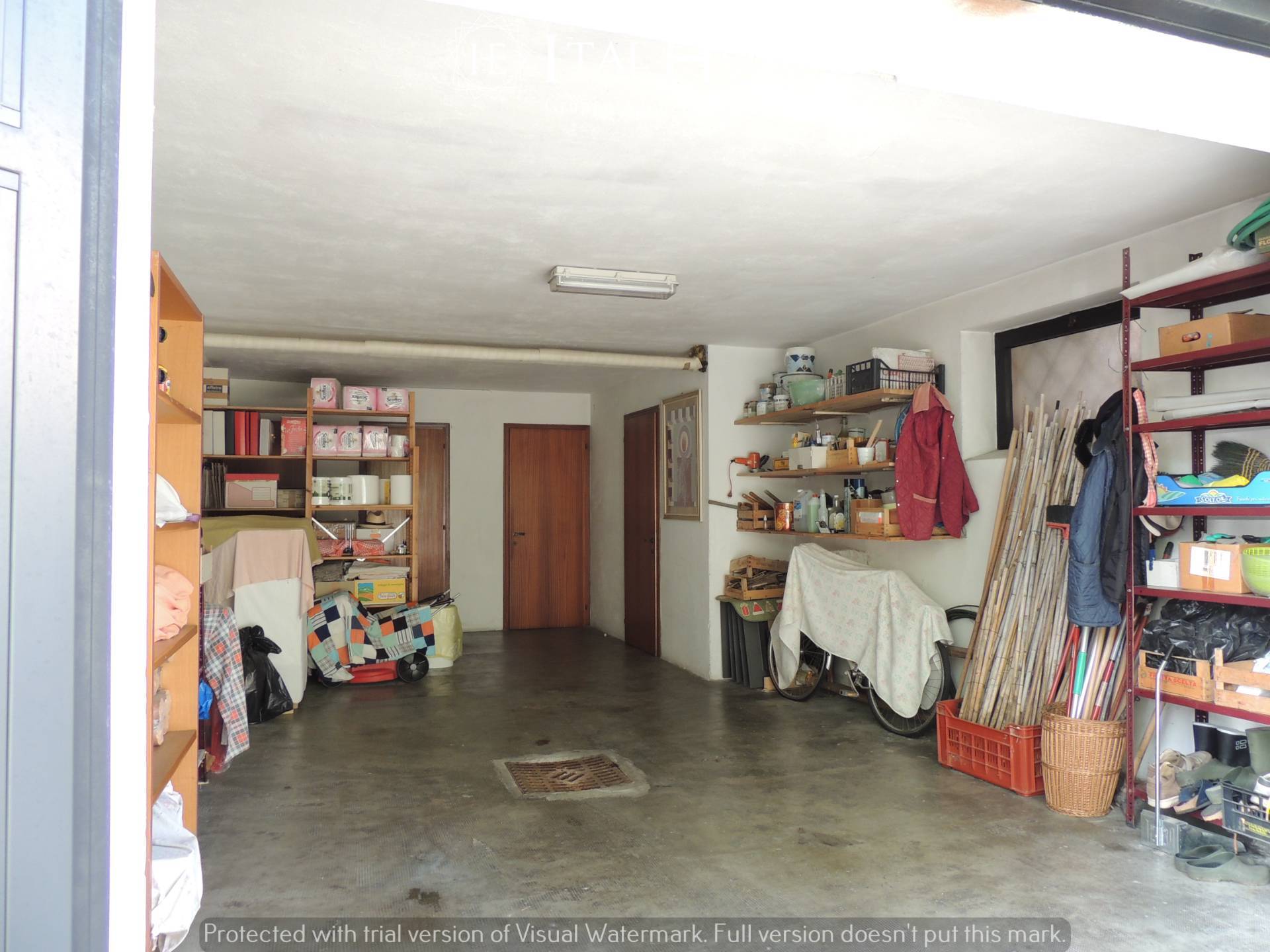 Completa la proprietà, al piano seminterrato, un box auto di 34 mq con bagno finestrato, enorme taverna di 60 mq con stufa a pellet, due cantine e 2 posti auto scoperti.