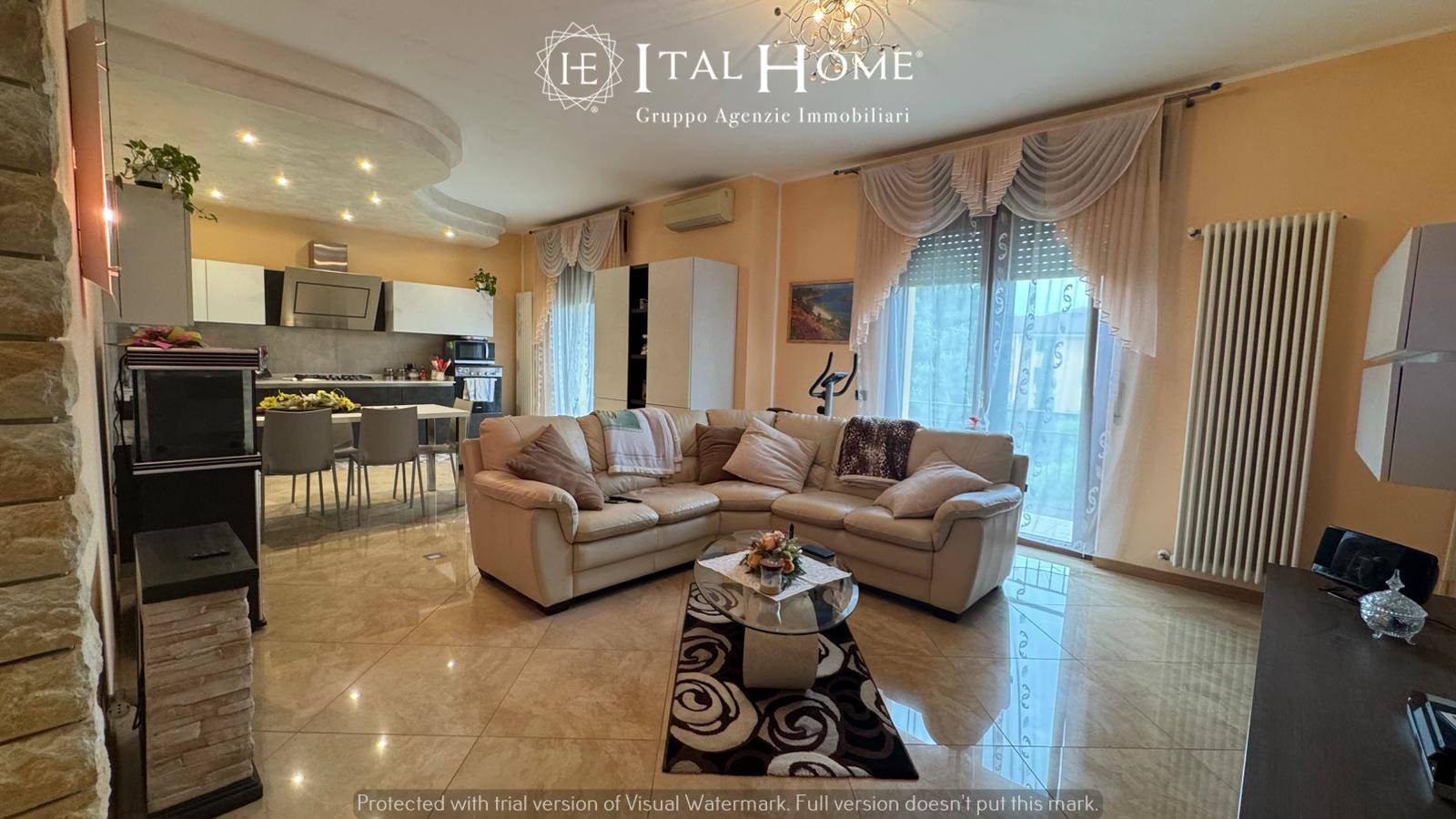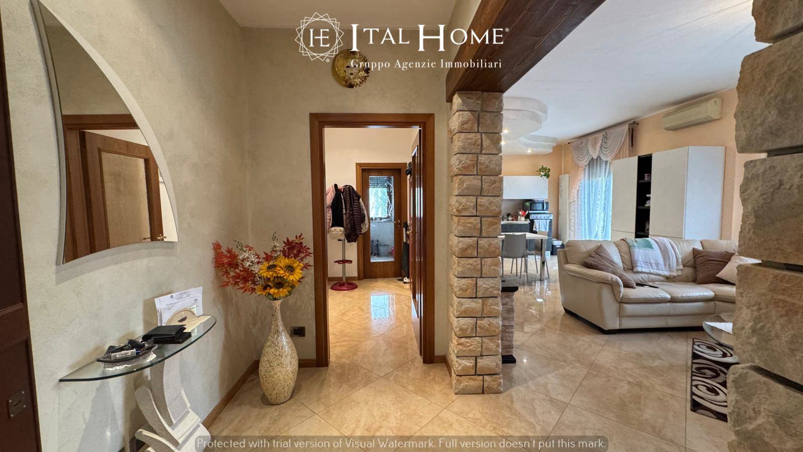 Appartamento di 135 mq, situato al 1° piano, così composto: elegante ingresso con arco in pietra decorativa, ampia zona living open space con cucina a vista ed accesso al balcone, zona notte con due camere (una matrimoniale ed una doppia), un bagno finestrato con doccia e doppio lavabo, locale tecnico/lavanderia con finestra.