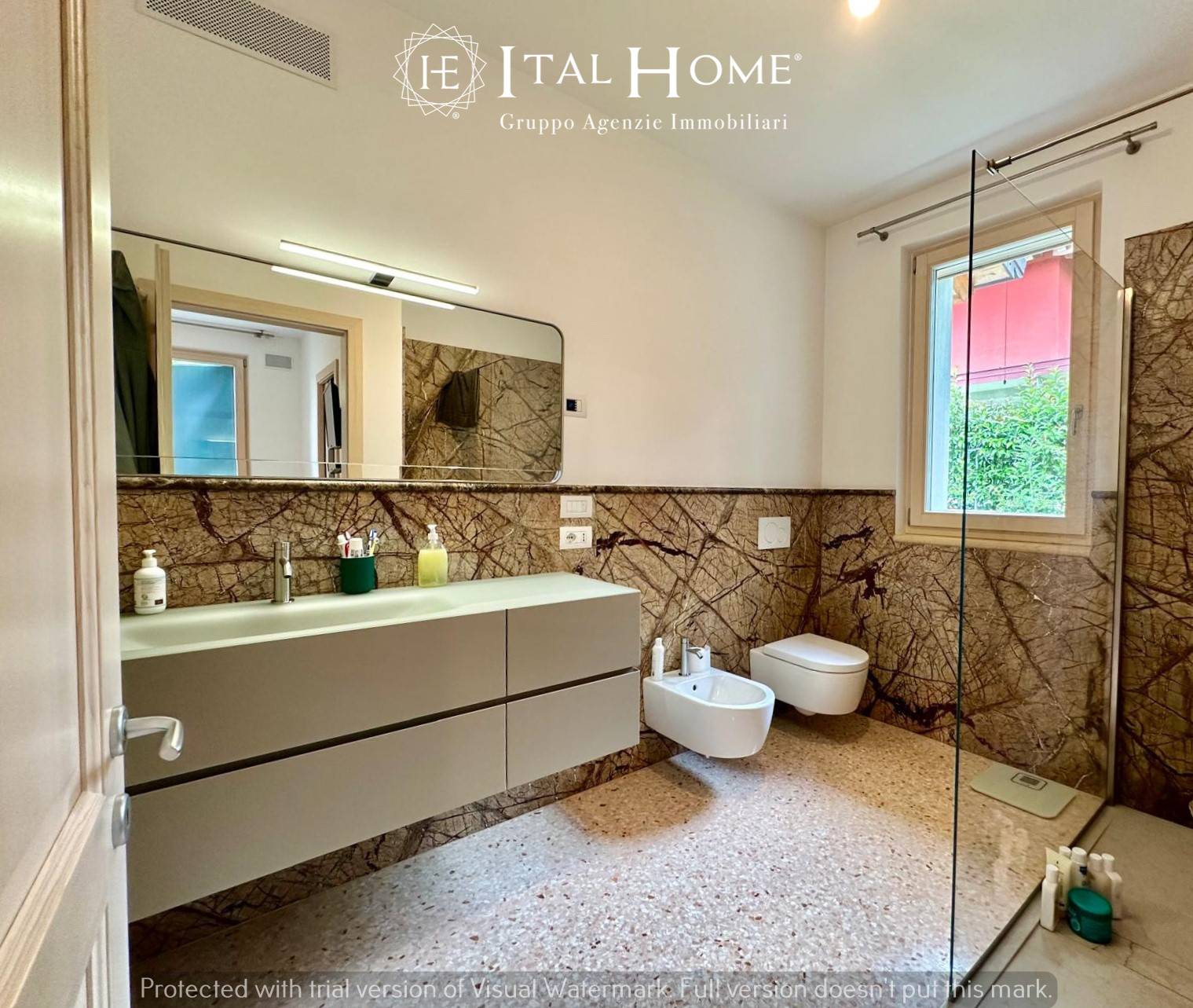 Cappotto esterno in grafite, tetto con coibentazione (Naturalia Bau), pavimentazione in veneziana con marmo rosa del Portogallo e Madre Perla, rivestimenti bagni con marmi pregiati, infissi in legno con triplo vetro termico, predisposizione per ascensore interno, impianto di raffrescamento e riscaldamento a pavimento e a parete, impianto domotica, impianto WMC (sistema per il ricircolo dell'aria interna alla villa per migliorare la qualità e il comfort abitativo), impianto fotovoltaico da 6 kW con predisposizione batterie d'accumulo, caldaia a gas e pompa di calore, predisposizione caldaia a legna, impianto di irrigazione del giardino automatizzata con 2 vasche interrate per la raccolta dell' acqua piovana, impianto d'allarme volumetrico perimetrale e possibilità di parte d'arredo.
