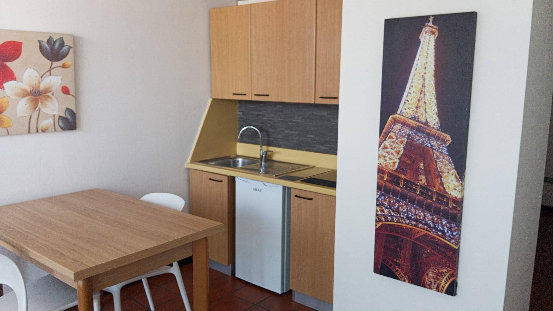 L'appartamento è composto da ingresso soggiorno con cucina a vista e zona letto semiseparata, bagno ed ampio terrazzo con super vista panoramica. Completa la proprietà un posto auto coperto. Viene affittato completamente arredato. Contratto annuale. Spese condominiali comprensive di riscaldamento € 150.00 mensili.