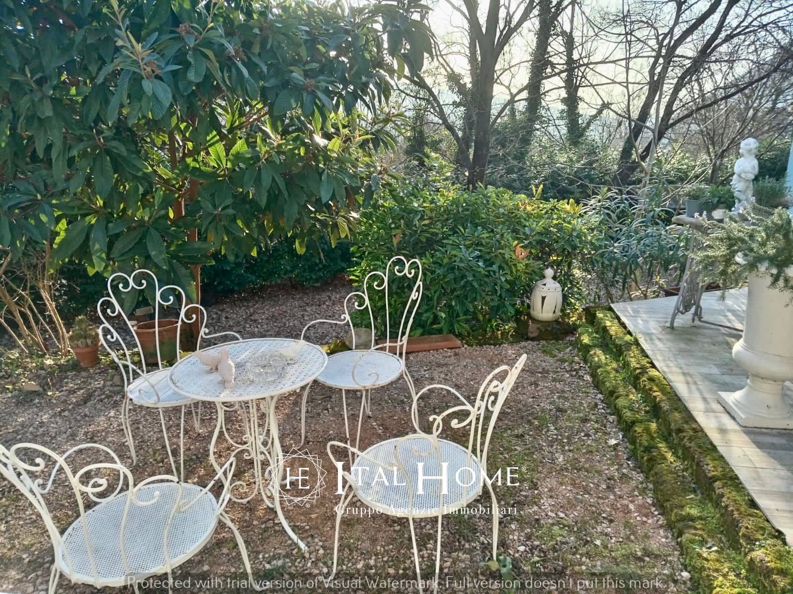 Sull'area esterna è presente una terrazza, un parco con piante secolari completamente riservato, svariati posti auto ed è stato ricavato anche un garage con struttura in legno ed una casettina per ricovero attrezzi/ripostiglio/cantinetta.